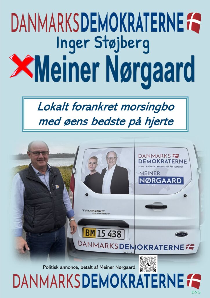 Disse ting, og mange andre, arbejder vi selvfølgelig også ud fra på Mors. Morsø Kommunes motto ”Sammen er vi bedst” passer perfekt til Danmarksdemokraterne-Mors, vi er alle hinandens forudsætninger for at vi i fællesskab kan gøre det bedre. Vi søger indflydelse hvor det er muligt og hvor vi mener det er til gavn for morsingboerne.