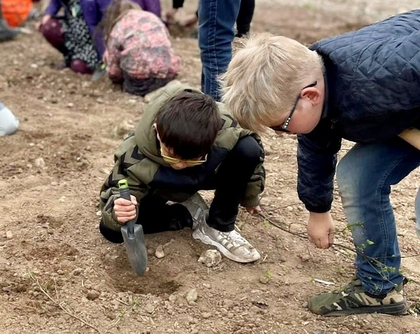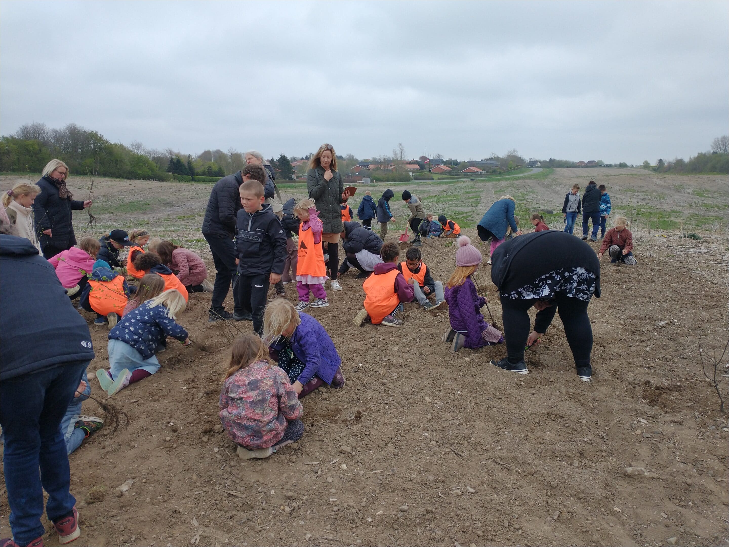 Det var skolebørn fra Øster Jølby, der i går fik æren at plante de første træer i skovprojektet, som ventes at give en klimaeffekt på 27,6 tons reduceret CO2 årligt.
