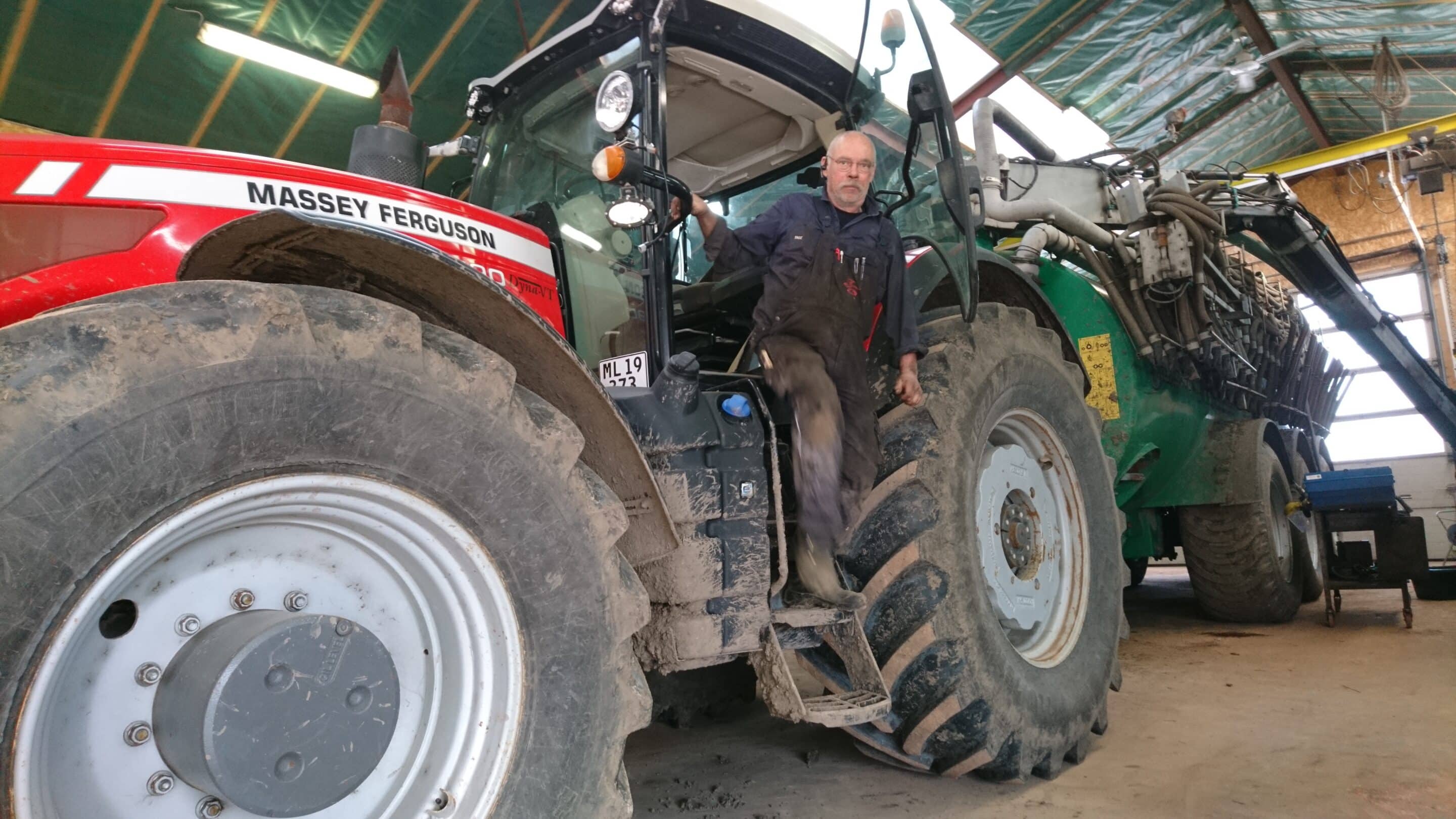 På billedet herover er Tage Nygaard og Jonas i gang med at finde en løsning på en gyllevogn, der ikke læsser gyllen ordentligt.