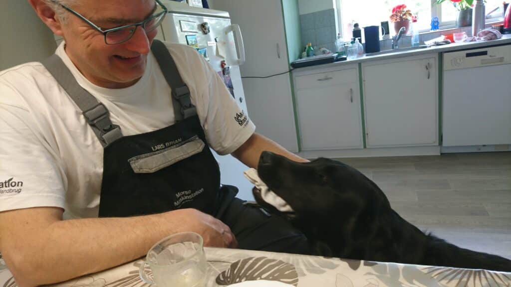 I køkkenet følger den halvandet år gamle Bjørn alle bevægelser fra sit menneske, og en hund er en nødvendighed i Lars Brian Hovmøllers hjem.