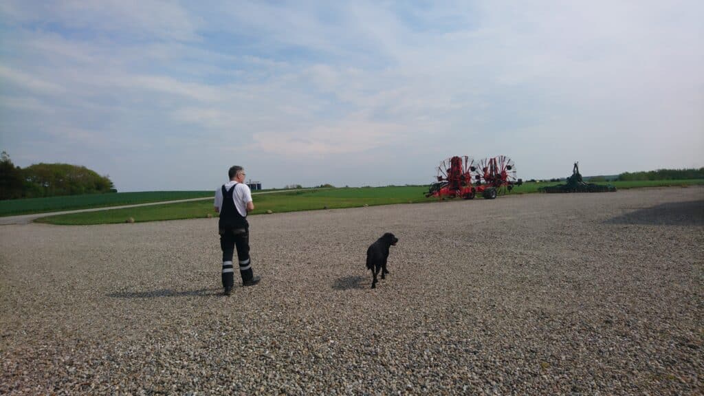 I det daglige er det manden og hans hund, der sammen med en håndfuld ansatte får det hele til at køre rundt på maskinstationen, både ude og inde.