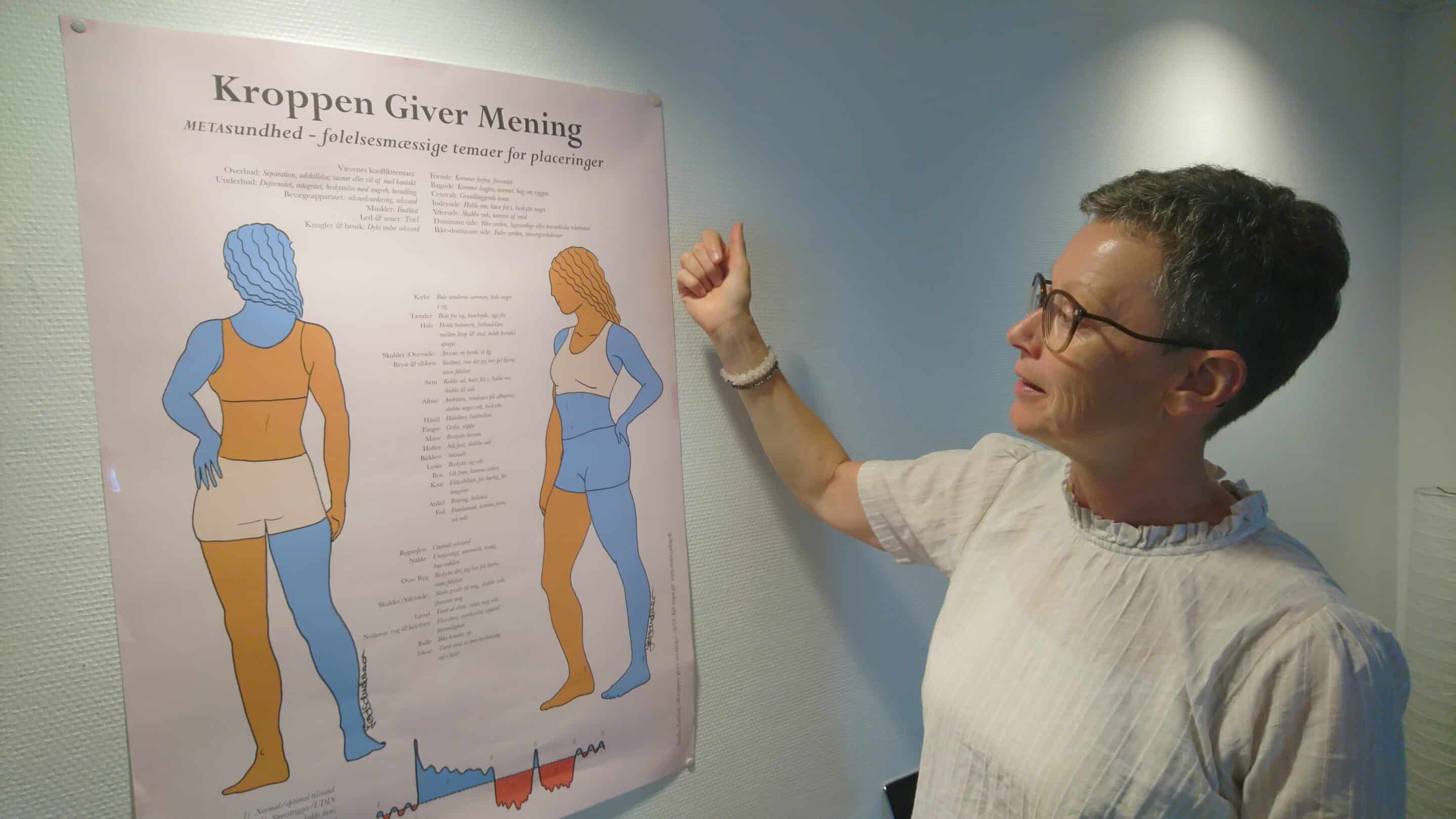 Og som Diana Andersen viser på billedet herunder, er der god sammenhæng mellem krop og sjæl/sind, også når roden til et problem skal findes.