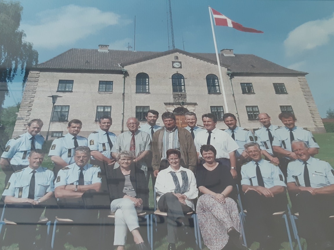 Gruppebilledet forestiller hele bemandingen på Nykøbing Politistation i 1998. Tæller man efter, vil man nå op på 18 mand m/k.