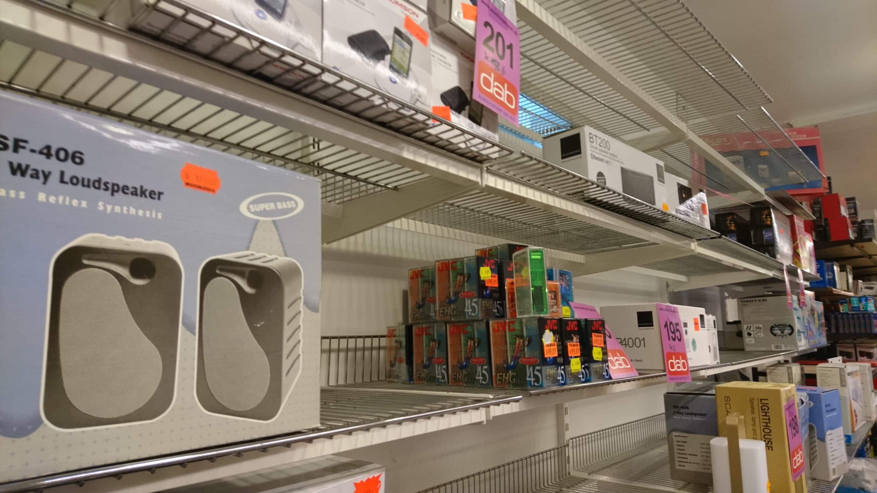 Rengøringsmidler, campingudstyr, julepynt, bilradioer, isterningemaskiner, gummisko og kassettebånd, for bare at nævne lidt flere.