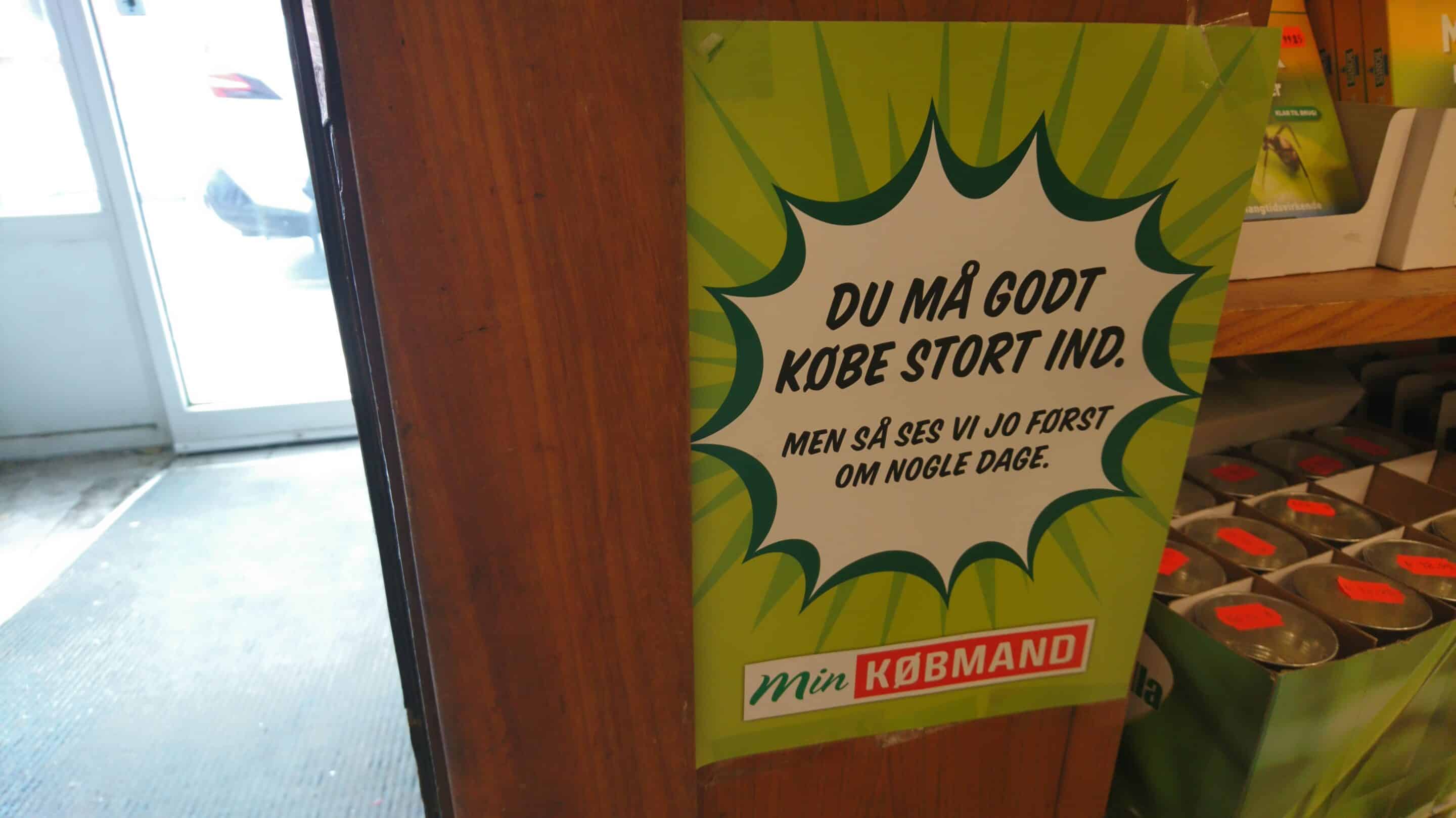 Skiltet på døren på fotografiet herunder møder kunder på vej ud fra Dige Lavpris, og netop nu kan de søde ord godt ramme lige i hjertet.