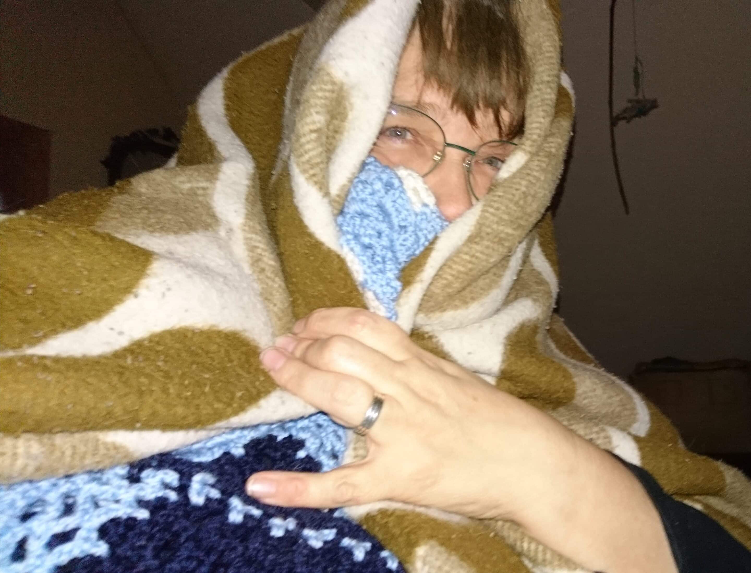 Er man ”in between” varmekilder, bliver man umådeligt glad og taknemmelig for alle de tæpper, man kan skrabe sammen fra hylder og skuffer og skabe.
