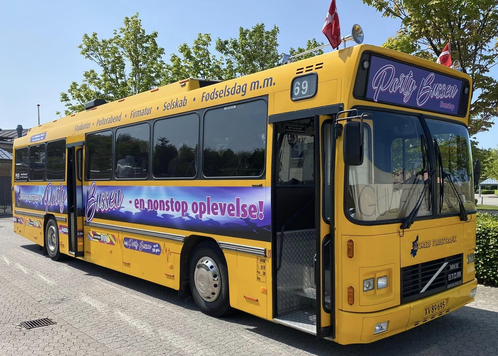 Partybussen er købt hos Bæks Bus ved Lemvig, og den er indrettet med gode sæder, plads til dansegulv, et godt toilet og selvfølgelig en bar.