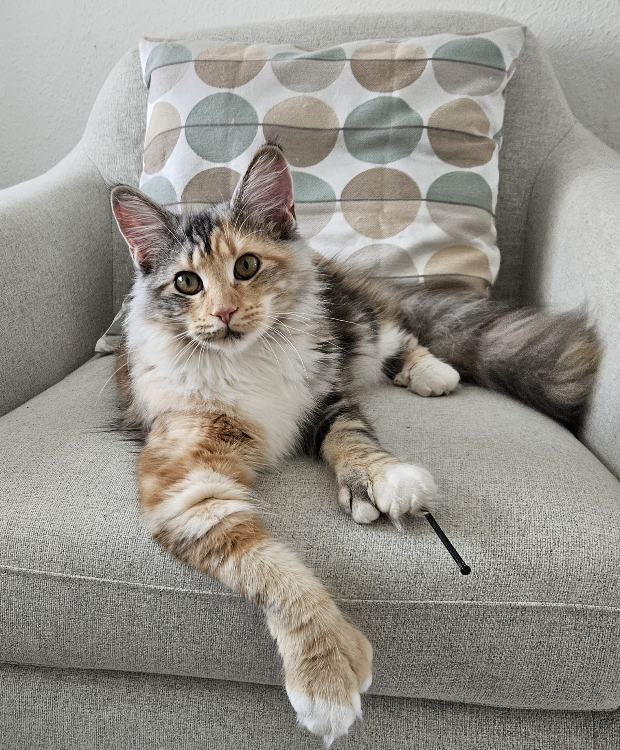 Hilla bor hos Astrid Lykken i Flade, som fortæller, at skønheden er en Maine Coon med ekstra tæer.