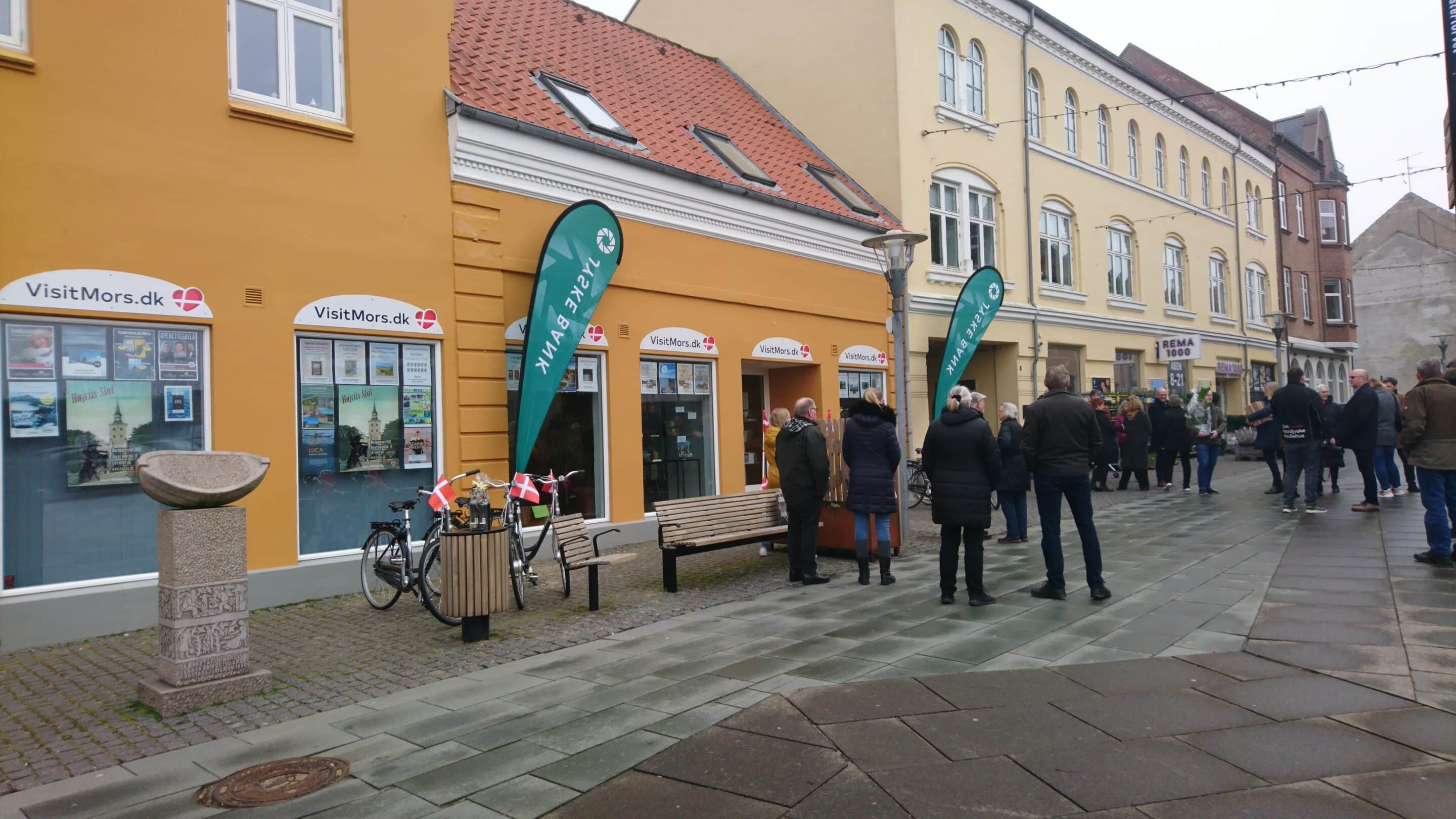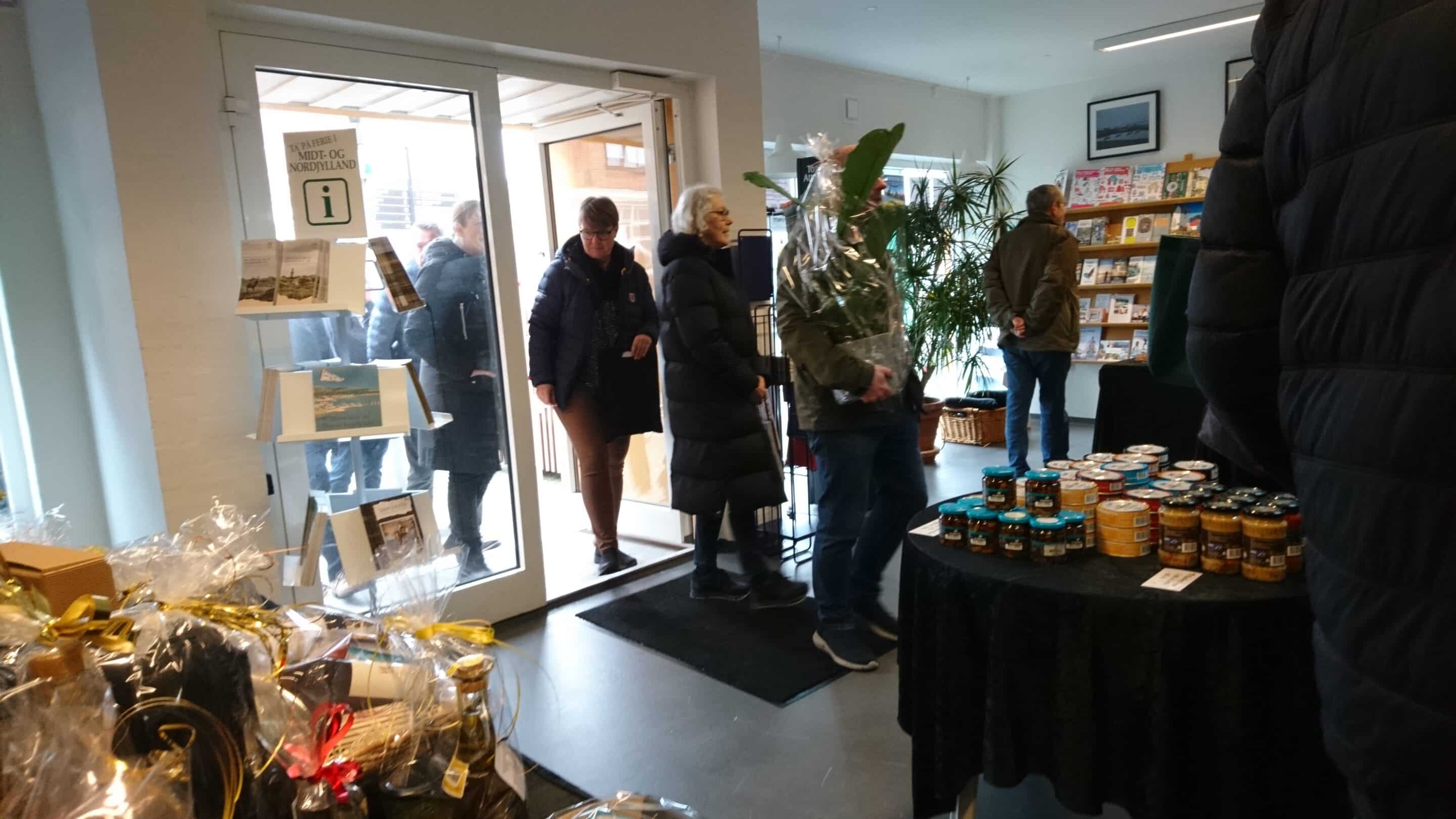 Her På Øen deltog i åbningen fra kl. 10.00 og en time frem. Der kan derfor sagtens være dukket nye ansigter op blandt de mange besøgende siden. Men i den første time så Her På Øen ingen af medlemmerne i kommunalbestyrelsen på Mors, hvor et flertal har stemt for et salg af den bygning på Havnen, turistbureauet har haft til huse i indtil i dag.